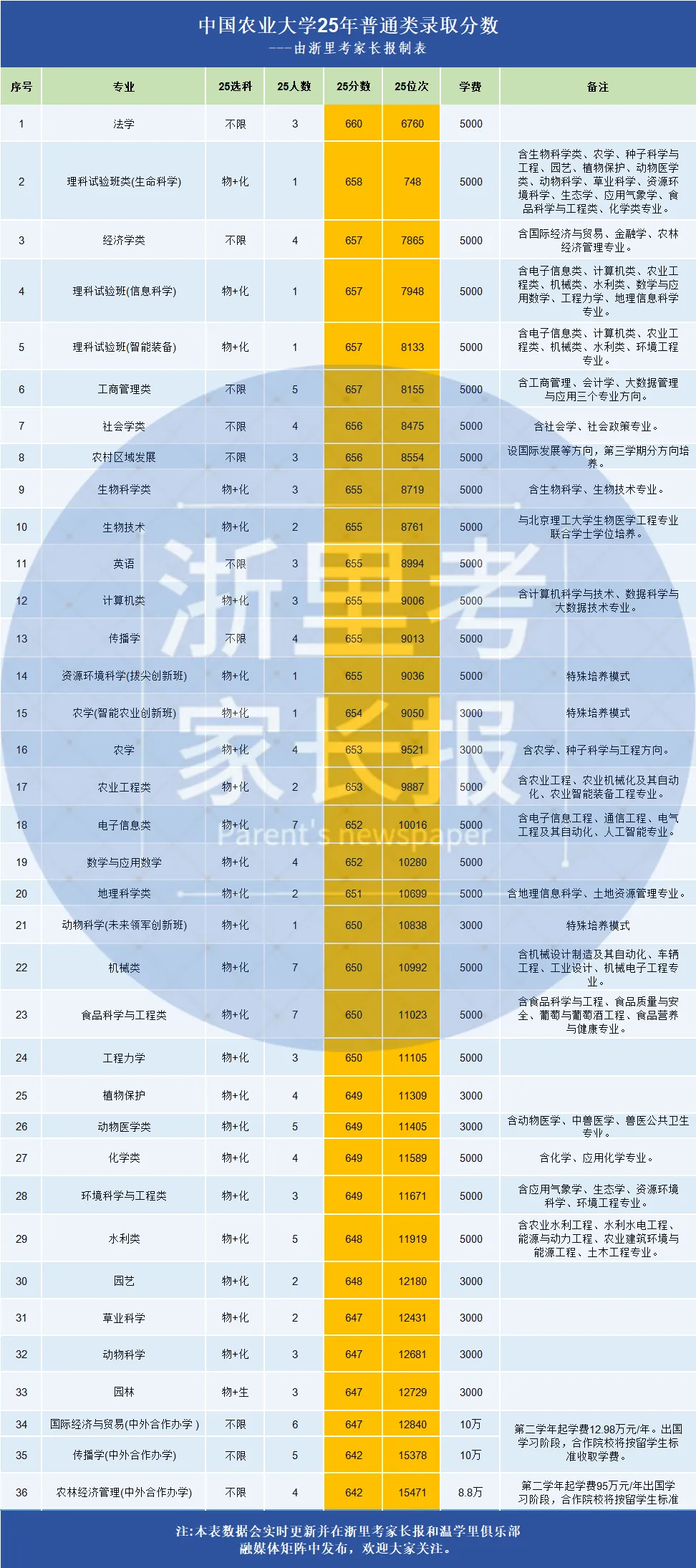 最低642分!2025年中国农业大学在浙江裸考录取分数~