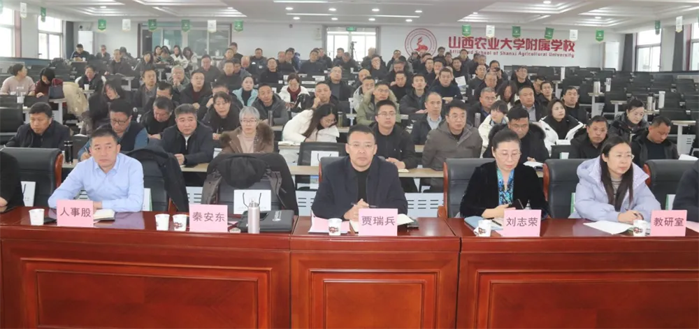 为进一步探索新时代中小学办学治校先进经验,推动区域教育事业的高质量,1月21日下午,晋中市太谷区中小学校长论坛会议在山西农业大学附属学校举办。山西农业大学(省农科院)党委常委、副校(院)长李捷,区教育局党组书记、局长贾瑞兵出席会议。区教研室主任秦安东,山西农业大学附属学校党总支书记、校长刘志荣,区教育局相关股室长,全区中小学校长及分管教学副校长参加会议。会议由秦安东主持。