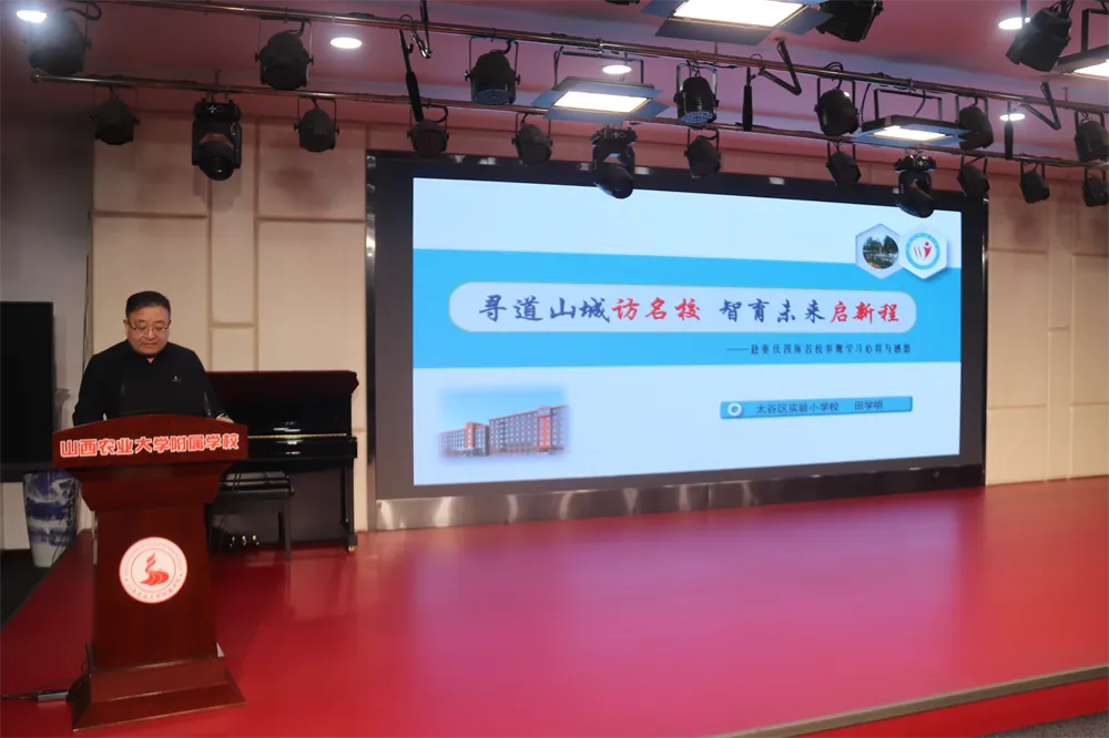 太谷师范附属小学张鲁军、实验小学校长田学明、明星小学校长牛跃刚分别就重庆名校访学活动及学校实际工作开展情况作《始于尝试,成于深耕》《寻道山城访名校,智育未来启新程》《赴渝学习取真经,笃行致远促提升》报告,将名校经验与本校实际相结合,提炼办学治校宝贵经验。