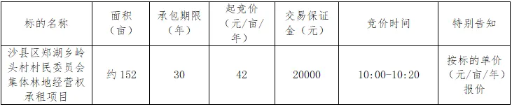 【林地经营权】20260203(周二)三明市沙县区郑湖乡岭头村村民委员会集体林地经营权承租项目