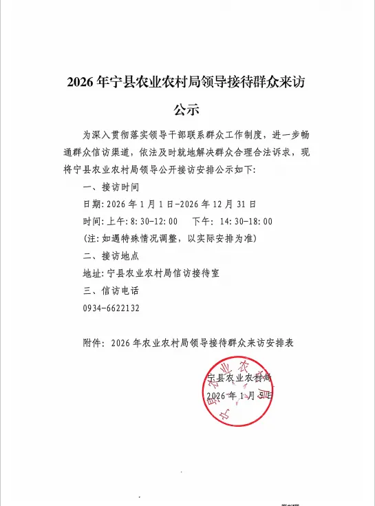 >2026年宁县农业农村局领导接待群众来访公示