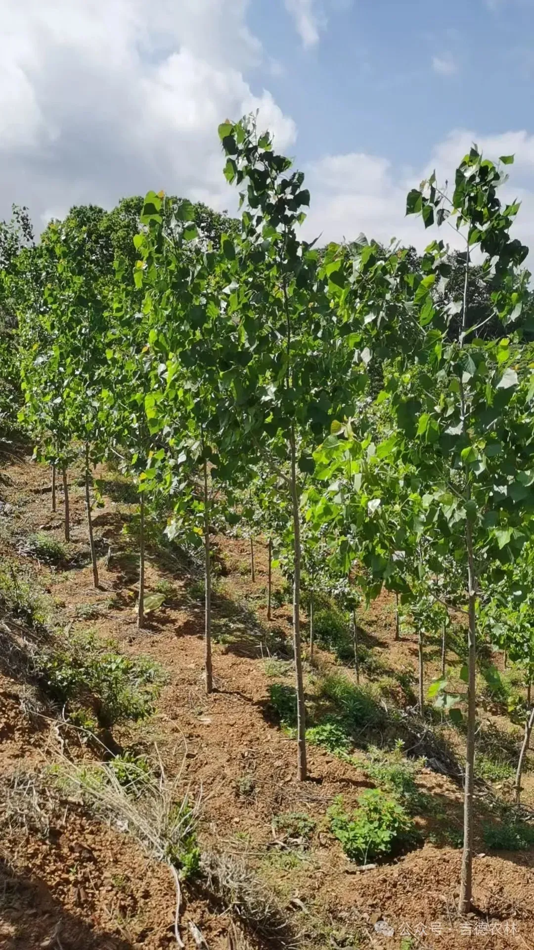 杉木、桉树大径材需要熬过一代人的光阴(20年+),吉德杨仅需六年!效率,是财富最直接的密码。打破杨树不上山的认定,山地、缓坡、丘陵、平地、河滩地,都能种!图为信阳山地种植,长势良好。