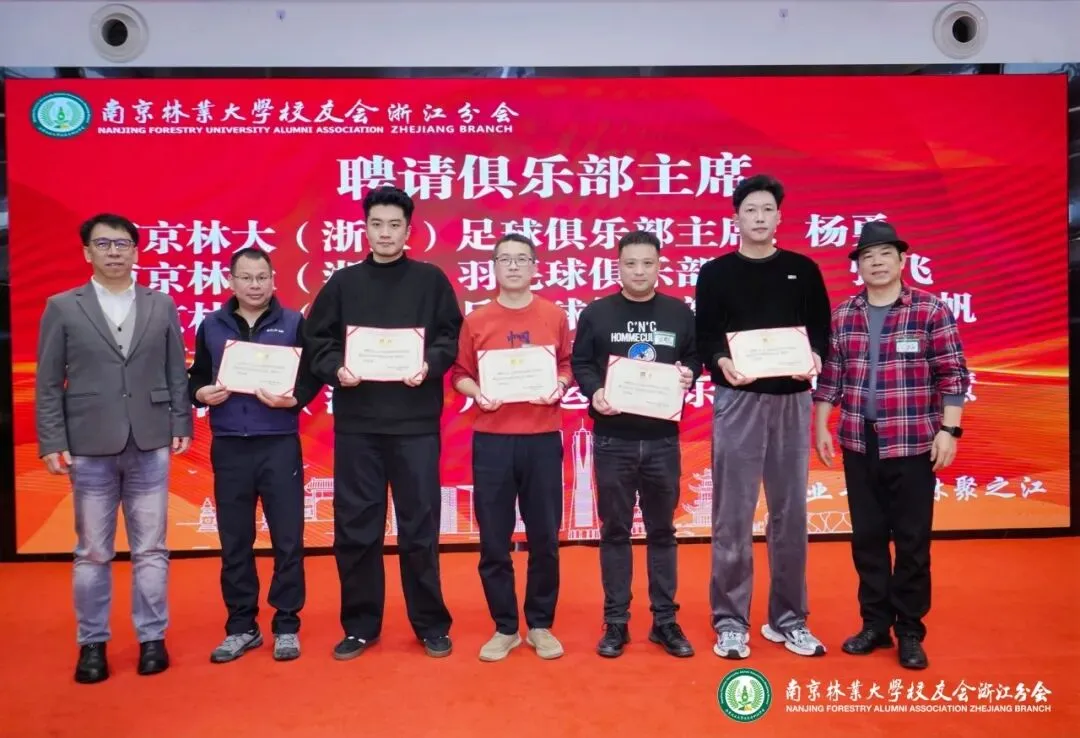 副会长何海文、宋国元为俱乐部主席颁发聘书。南京林大(浙江)五大俱乐部主席分别为:足球俱乐部主席杨勇、羽毛球俱乐部主席张飞、乒乓球俱乐部主席张一帆、篮球俱乐部主席杨骏、户外运动俱乐部主席毛慧。