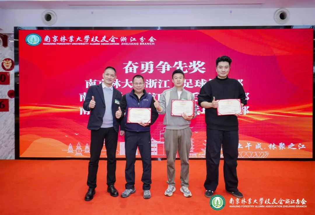 工作奉献奖共分突出贡献奖、无私奉献奖以及奋勇争先奖三大类,母校董博常委为吉祥、何海文、宋国元、叶润露、吴建焕、金永顺、刘艳、刘静、武超、尹云从、王丰丰、吴宗纲等12位突出贡献奖获得者校友颁奖;母校校友办主任刘子超为李琴、杨钟亮、许海峰、王洪艳、孙勇、王可庆、颜崇邓等7位无私奉献奖获得者校友颁奖;副会长陈文荣为南京林大(浙江)足球俱乐部、羽毛球俱乐部及乒乓球俱乐部等3个奋勇争先奖获得者球队颁奖。