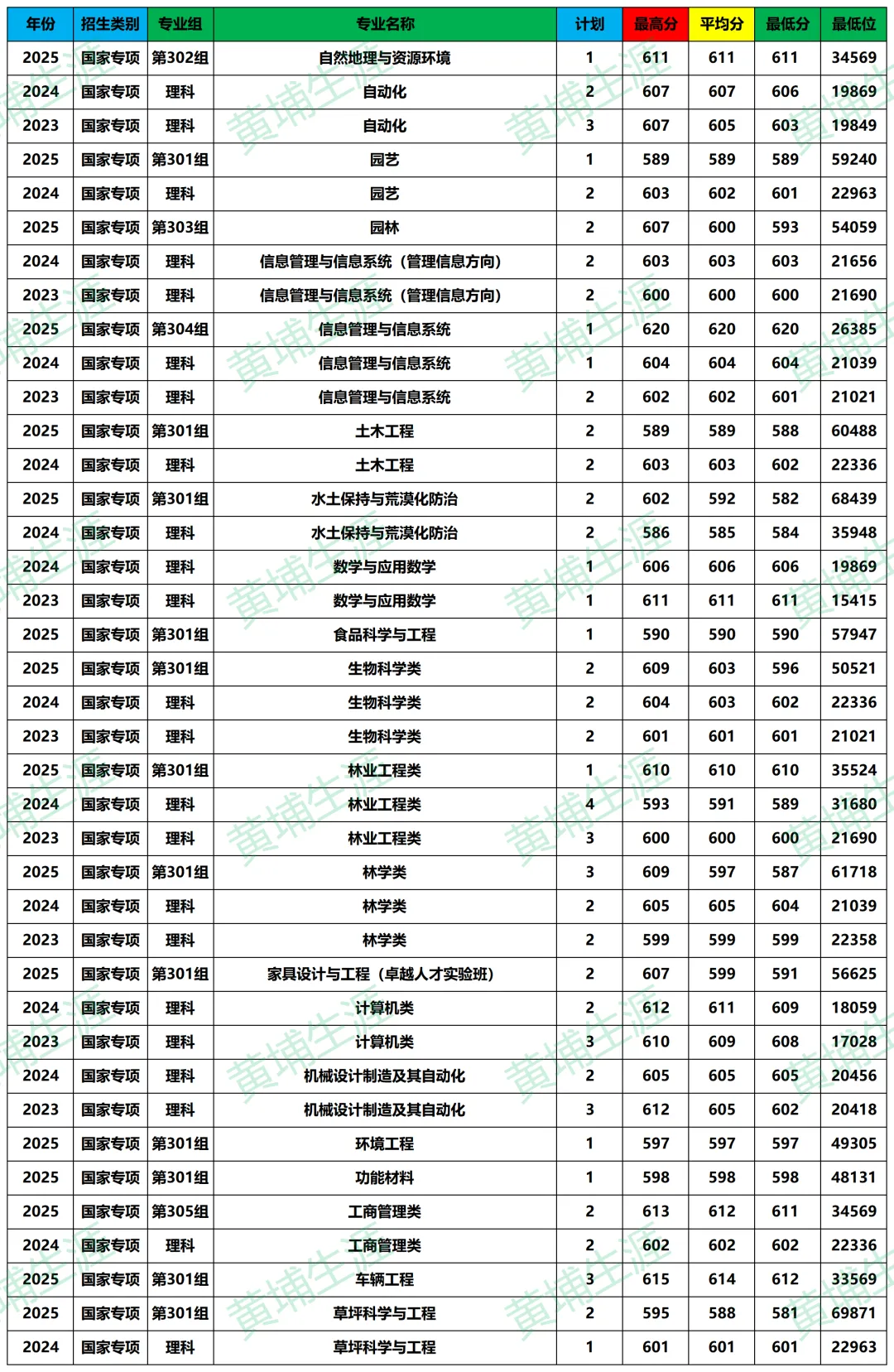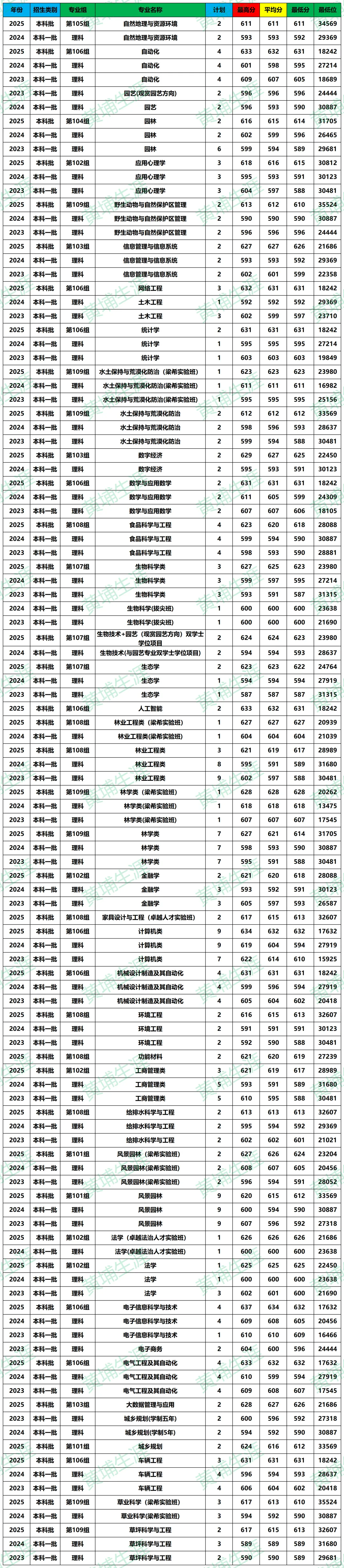 >【北京林业大学】近三年录取专业分析