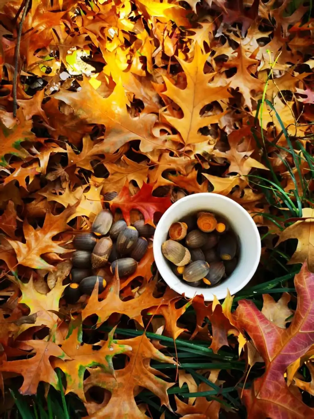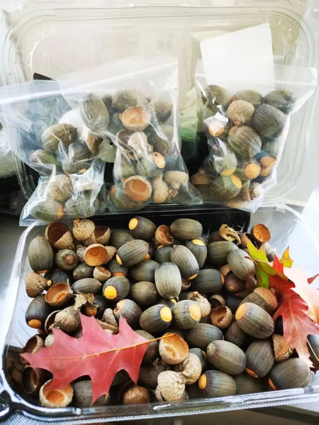 壹木年会时带了一大盒娜塔栎去上海植物园。那几天果子真好捡,扒开落叶有一大片果实。