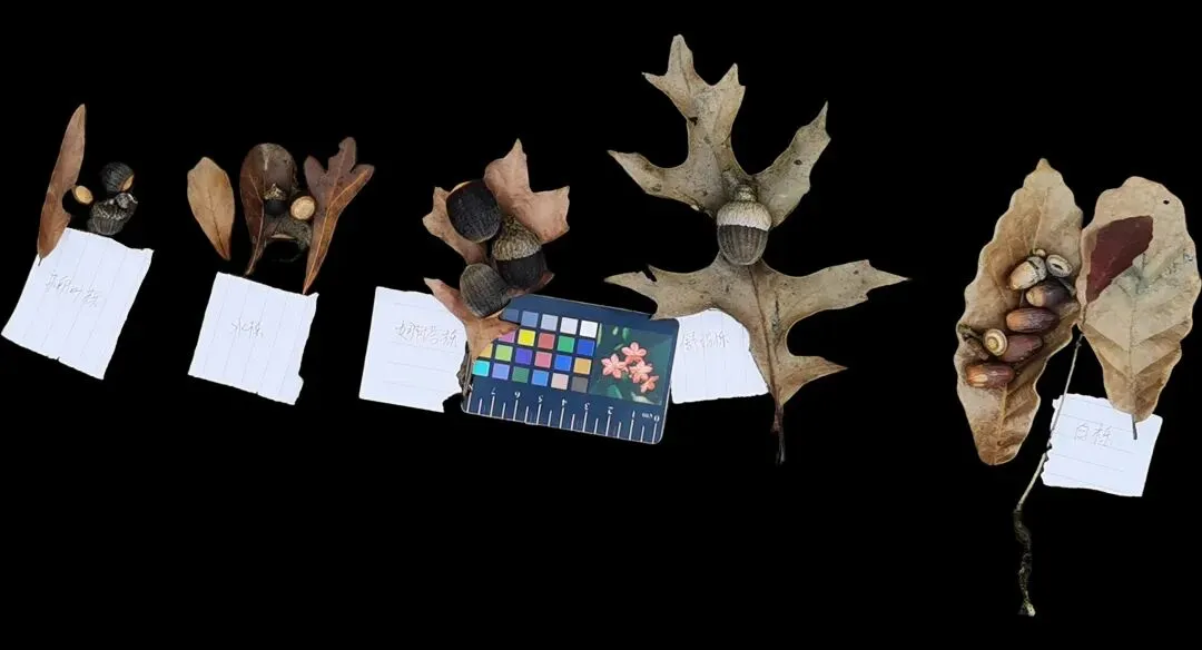 舒玛栎果实尚挂在枝头。大家都喊着先拍照,再摘最容易摘到的低矮枝,即便低矮,也是文慧站在树桩上拉下来的(此处有亚林所工作人员陪同,未经允许,请勿模仿)舒玛栎名字是第一次听说。亚林所有73种壳斗科植物,我们计划2026春天开花,秋天叶子变色时再奔赴2次亚林所。