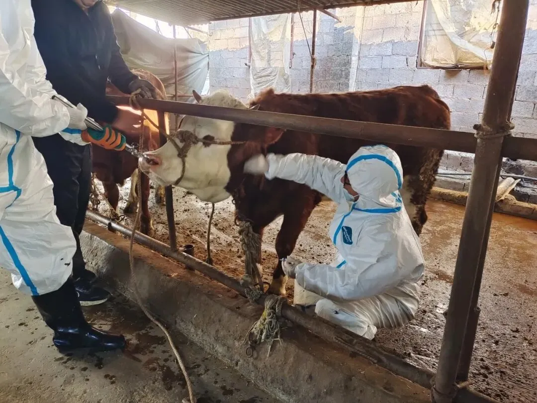 此次免疫抗体监测工作严格遵循随机抽取、科学规范的原则,聚焦家禽、牛、羊等重点畜禽品种,重点开展血液样品采集与抗体水平检测分析,精准研判畜禽免疫效果,严格以“群体免疫密度100%、免疫抗体合格率70%以上”为核心评判标准,确保监测数据真实可靠、全面客观。本次监测共采集蛋鸡血液样品30份(涉及2户养殖户)、肉牛血液样品10份(涉及1户养殖户)、山羊血液样品10份(涉及1户养殖户),重点对家禽禽流感、新城疫,牛口蹄疫,羊口蹄疫、小反刍兽疫等重点动物疫病的免疫效果进行抗体监测,全面掌握辖区畜禽免疫抗体水平,为后续精准完善疫病防控措施、补齐防控短板提供了坚实的科学数据支撑。