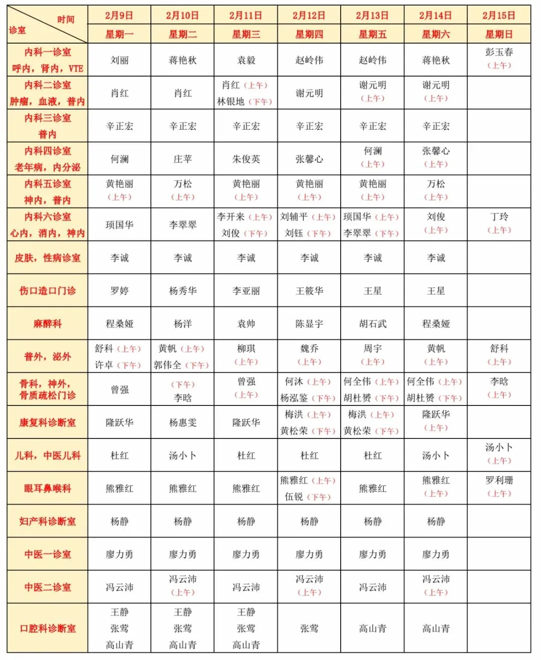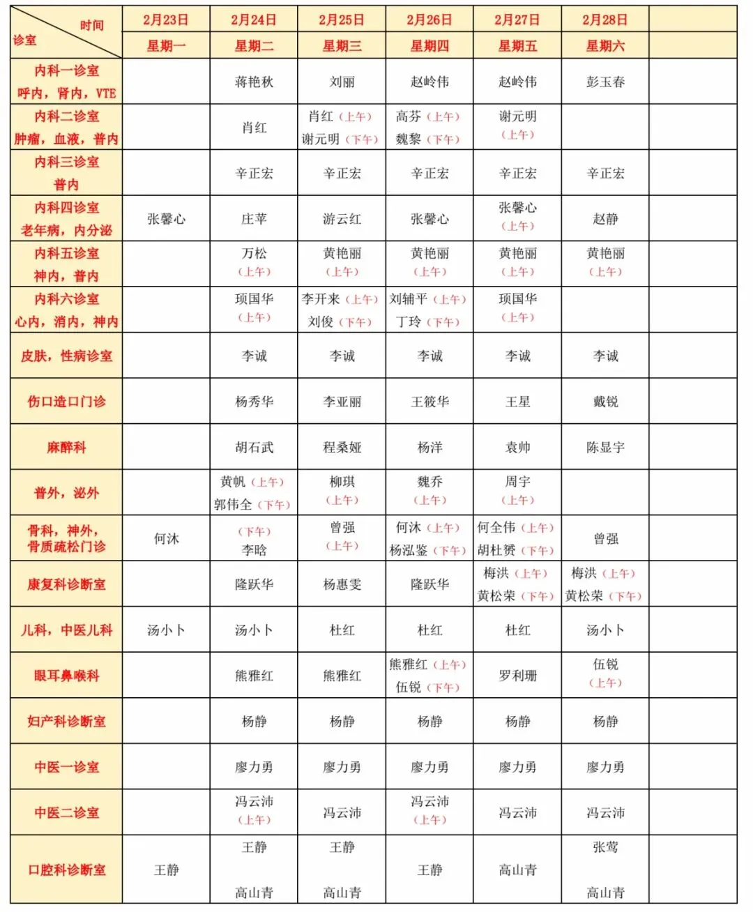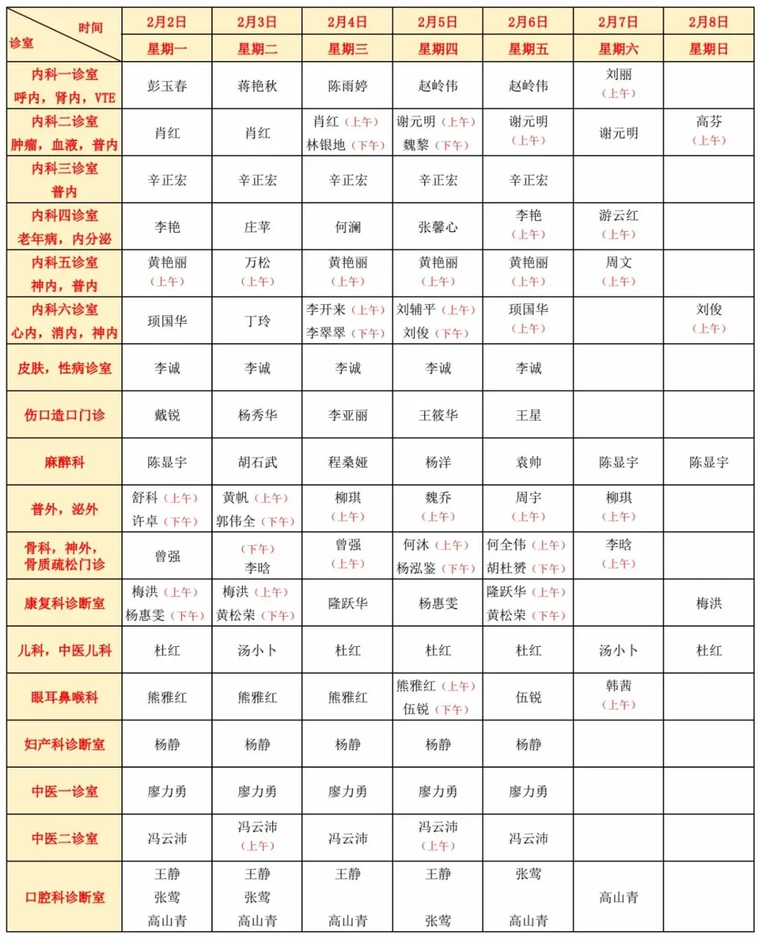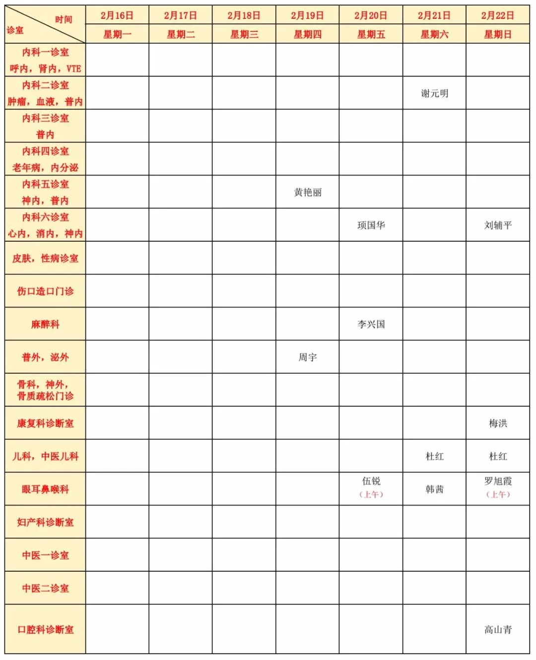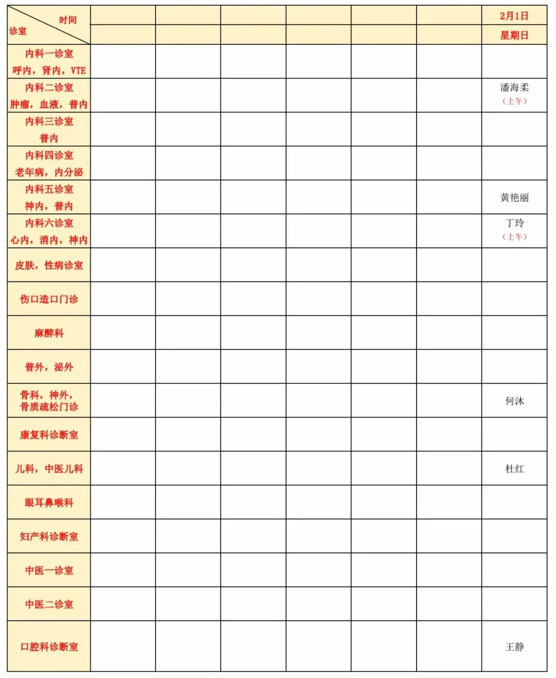 门诊医生坐诊信息