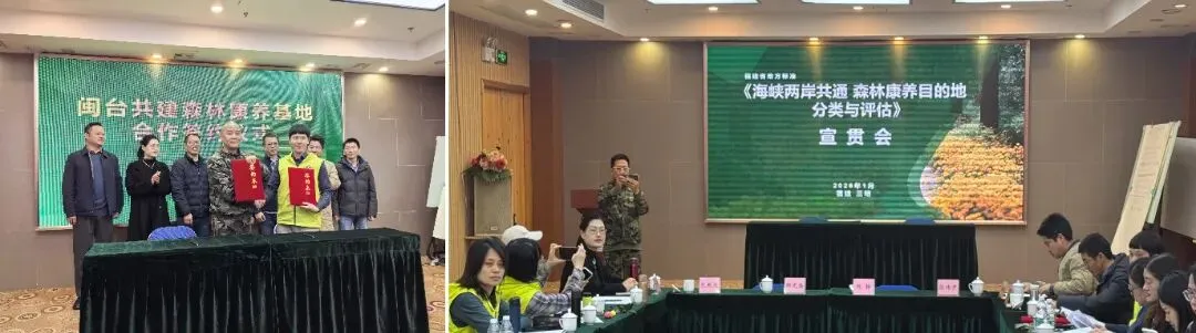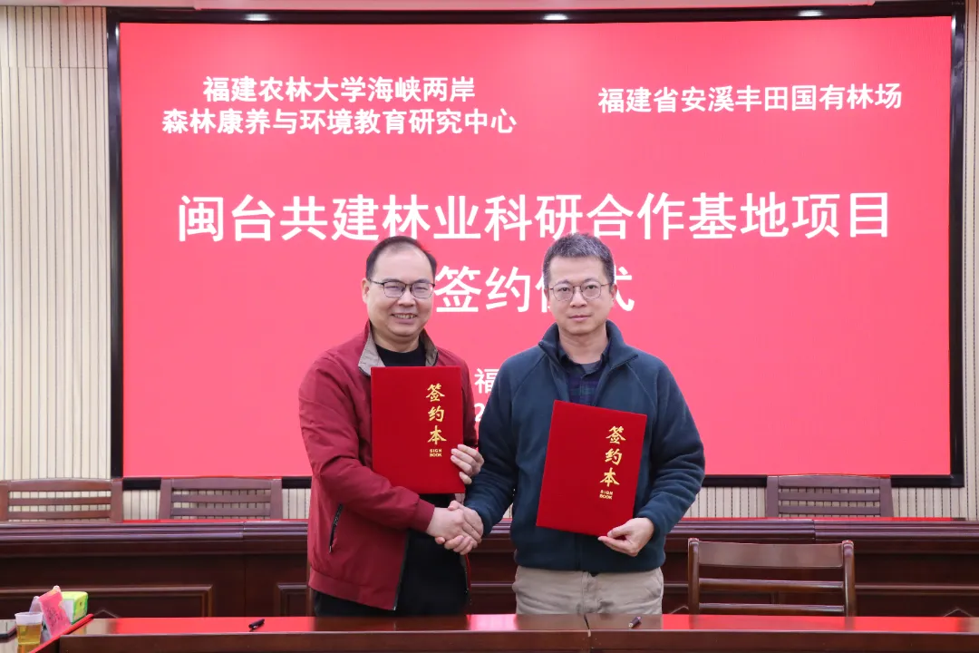 “闽台林业科技赋能林场发展座谈交流会暨闽台共建林业科研合作基地项目签约仪式”在安溪丰田国有林场举行。作为森林“四库”联动试点区,丰田林场围绕“水库、粮库、钱库、碳库”功能协同发展,积极探索海峡两岸合作新机制。座谈会上,两岸代表聚焦林业经济振兴、森林康养等重点领域,分享实践经验与科技成果,并就林业“四库”功能提升的科技路径展开深入研讨。在与会嘉宾的共同见证下,福建农林大学海峡两岸森林康养与环境教育研究中心与安溪丰田国有林场成功签署共建林业科研合作基地协议,标志着闽台林业科技协同创新进入实质性合作阶段,也为森林“四库”联动试点建设注入了海峡两岸协同创新的新动力。