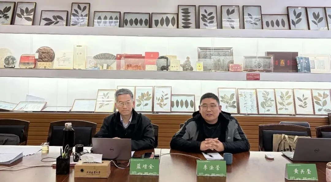 1月24日,临沧市政协党组书记、主席李银峰,副主席李彪,秘书长袁自科,办公室工作人员李青林一行到校进行实地考察与交流座谈,古茶树研究团队师生参加。会上,林学院党委副书记、古茶树研究中心负责人李法营对临沧市政协一行到来表示欢迎,并介绍了学校、学院在古茶树科学研究、生态保护与产业融合等方面的工作进展。蓝增全教授阐释了“澜沧江流域茶文明”“滇红茶精神”的核心要义,并强调了古茶树资源在推动临沧乡村振兴、实现生态产品价值转化等方面的重要意义。李银峰对西南林业大学古茶树研究团队的热情接待和详尽介绍表示感谢,并对团队在古茶树保护与利用领域取得的科研成就和社会贡献给予高度评价。并表示将进一步依托高校科研优势,深化市校合作,共同为云南省持续打造世界一流‘绿色食品牌’,推动高原特色农业高质量发展贡献力量。调研组一行还参观了学校院士厅和世界茶树原产地古茶树资源展馆。
