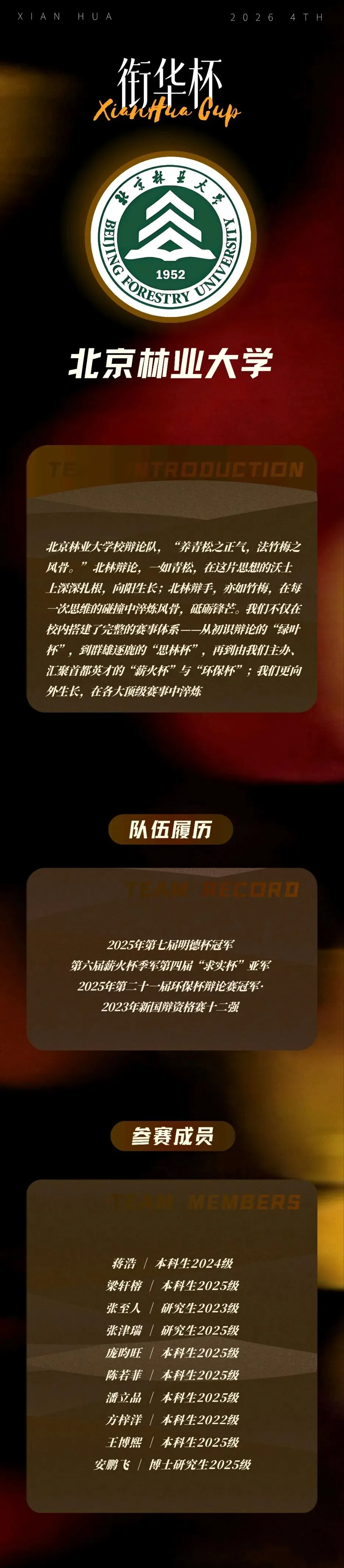 参赛队伍巡礼:北京林业大学|第四届衔华杯世界辩论邀请赛