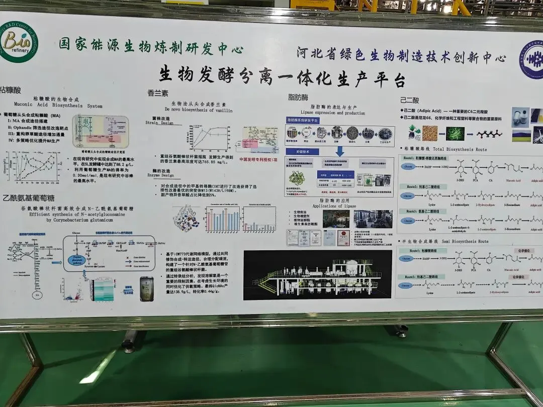 项目搭建的生物发酵分离一体化生产平台,成功实现了粘糠酸、香兰素和己二酸等化学品的生产。