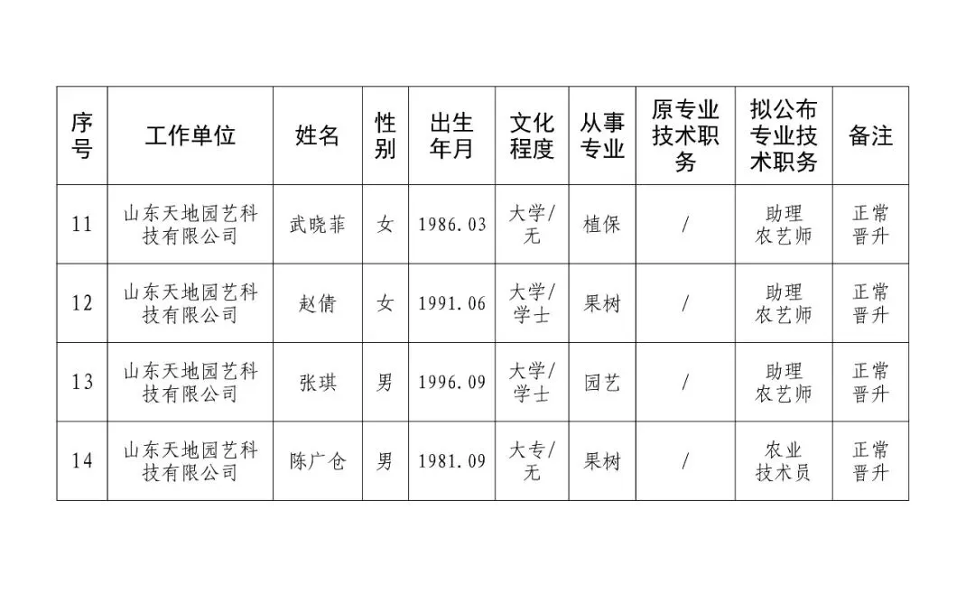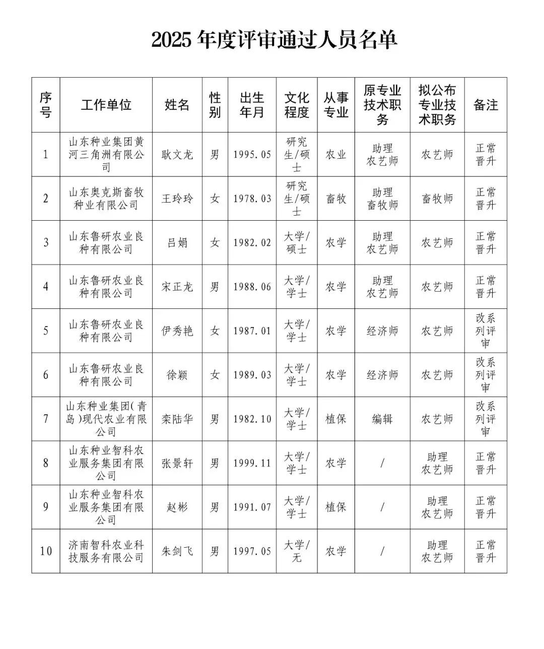 25年山东农业集团农业技术中级公示