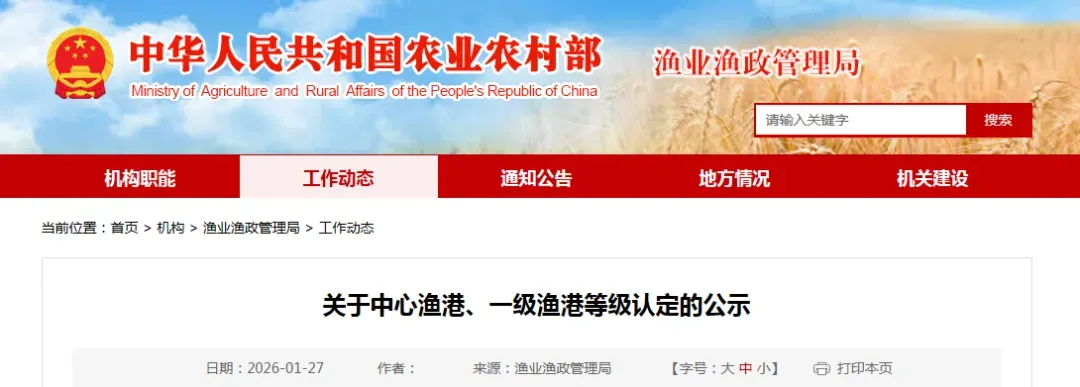如对公示名单有异议,请于2026年1月31日前向农业农村部渔业渔政管理局反映。