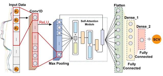 图4. 用于高光谱数据的带自注意力模块的1D卷积神经网络框架