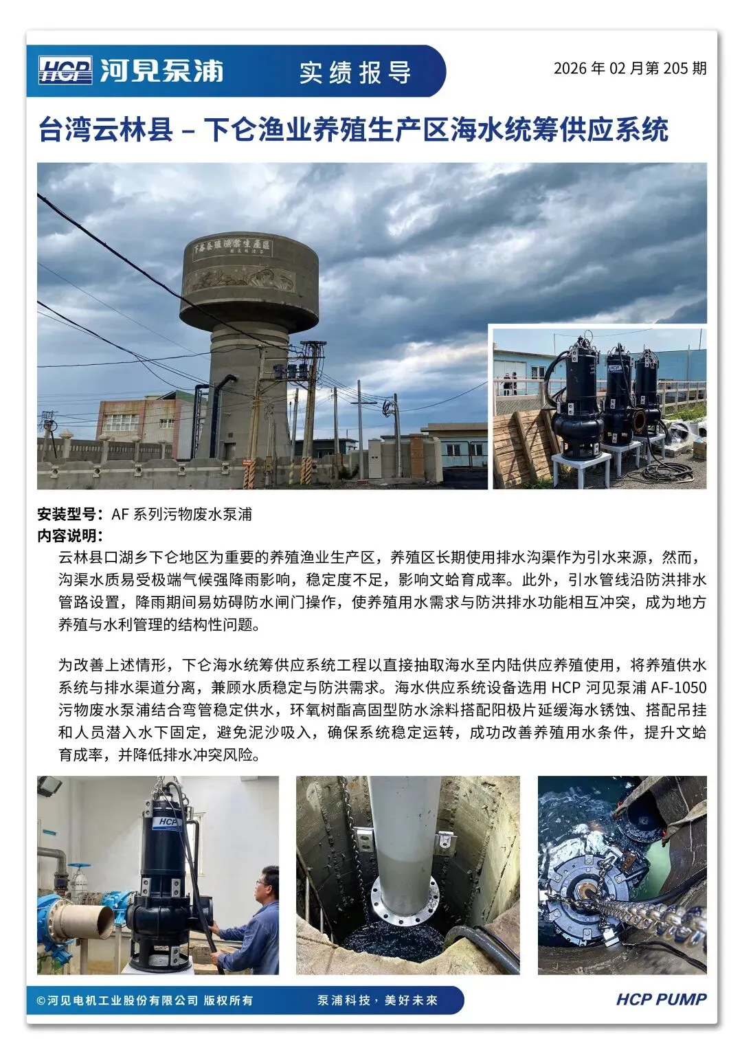 本次海水供应系统设备选用HCP河见泵浦AF-1050污物废水泵浦结合弯管稳定供水。环氧树酯高固型防水涂料搭配阳极片,有效延缓海水锈蚀,增长泵浦的使用寿命。装配吊挂和人员潜入水下固定,避免泥沙吸入,确保系统稳定运转,成功改善养殖用水条件,提升文蛤育成率,并降低排水冲突风险。