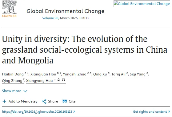 近日,山西农业大学侯向阳教授团队在环境科学与可持续发展领域的国际顶级期刊《Global Environmental Change: Human and Policy Dimensions》(五年影响因子11.5,位列该领域前1%)上发表了一项重要研究成果,题为“Unity in diversity: The evolution of the grassland social-ecological systems in China and Mongolia”。这项研究融合了草学、经济学与地理学等多学科视角,系统梳理了过去一个世纪蒙古高原草原社会-生态系统的演变历程,并通过对中国内蒙古与蒙古国的深入比较,揭示了不同制度背景下草原治理所展现出的多元而有效的路径。