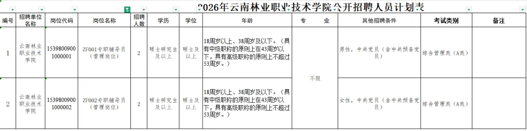 2026年上半年云南林业职业技术学院公开招聘统一在云南林业职业技术学院门户网站进行网络报名。