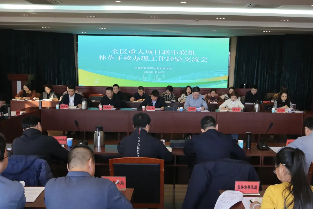 1月26日,全区重大项目联审联批林草手续办理工作经验交流会在呼和浩特召开。自治区林草局党组成员、副局长铁牛出席会议并讲话,自治区林草局党组成员、副局长武国庆主持会议,相关业务处室负责人,各盟市林草局局长、审批业务人员等50余人参会。