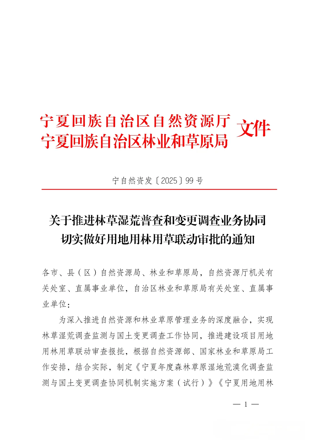 >内部文件!自然自然厅 林业和草原局关于推进林草湿荒普查和变更调查业务协同切实做好用地用林用草联动审批的通知
