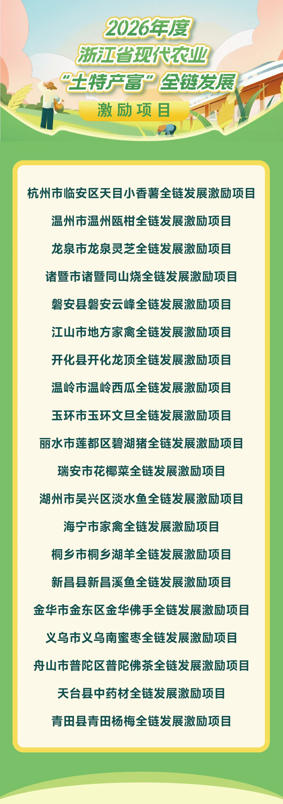 首批20个!浙江省公布2026年度现代农业“土特产富”全链发展激励项目名单