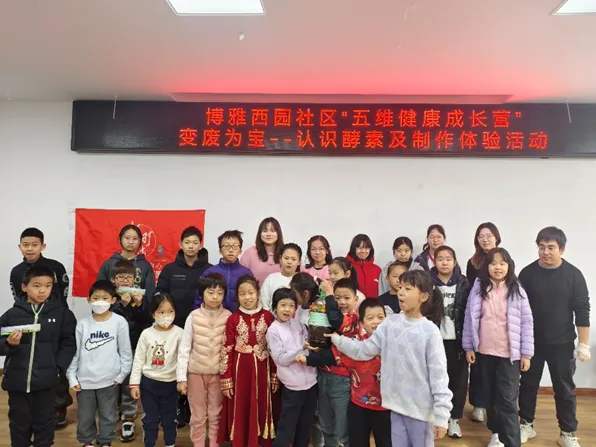 1 月 27 日,博雅西苑社区热闹非凡,一场别开生面的 “五维健康成长营” 之 “变废为宝 —— 认识酵素及制作体验” 活动在社区活动室成功举办,吸引了众多小朋友和家长参与。与此同时,“花事雅聚 酵素传经 —— 博闻雅议邻里分享会” 也同步开展,让社区居民在交流中共创绿色生活方式。
