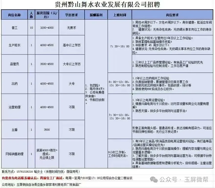贵州黔山舞水农业发展有限公司招聘