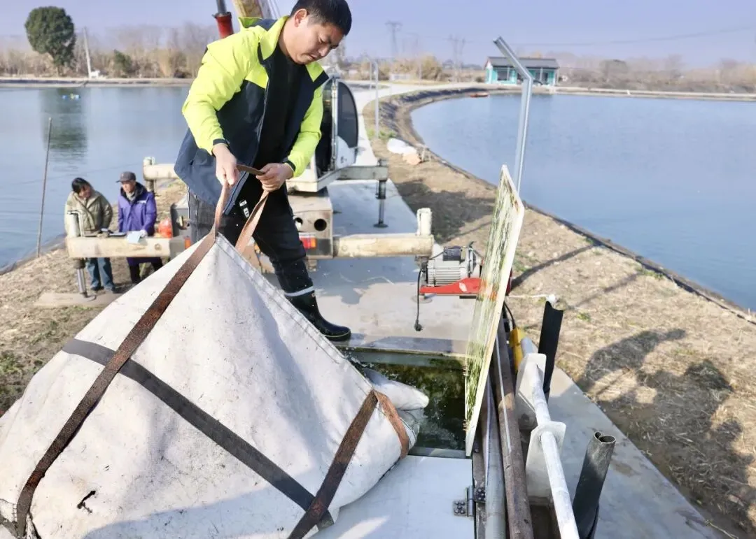 从连通太湖的东风河引水,优质的“陆区青鱼”品牌吸引来自江浙沪多地的抢购者,现场10多辆水产运输车排满路边,等候鱼塘里的员工网鱼上岸。常州怡同饲料水产经营部老板黄文华抢先一步,一早不到7时就驱车赶到现场订购首批出塘的青鱼。“今年‘陆区青鱼’品质好,市场价格比往年提高了2元左右1斤。”黄文华说。