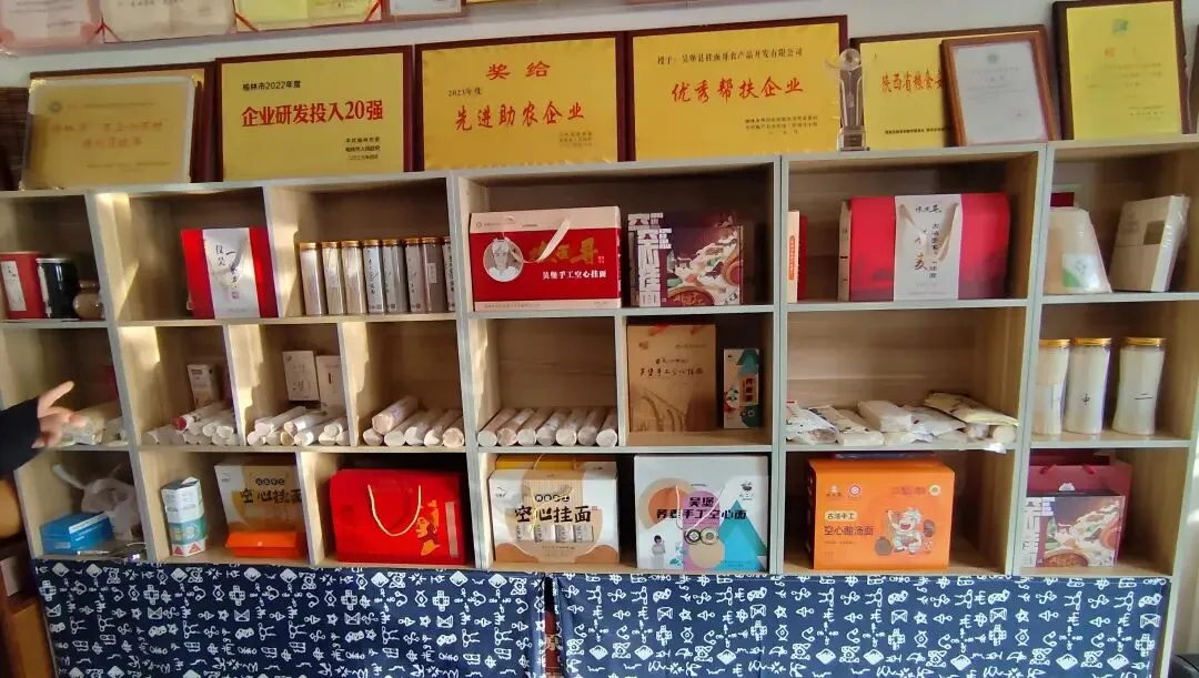 考察团直奔产业一线,首站走访了吴堡县挂面哥农产品——作为吴堡手工空心挂面产业的标杆主体,该企业荣誉加身,不仅是“陕西省非物质文化遗产”传承单位、“榆林市农业产业化市级重点龙头企业”,还斩获“企业研发投入20强”“先进助农企业”等多项称号。