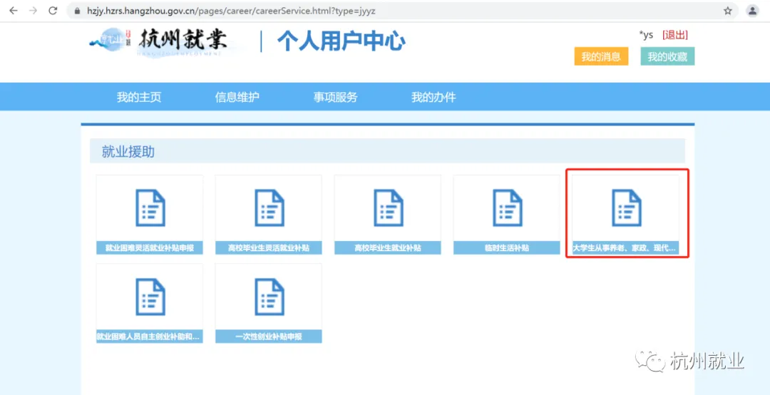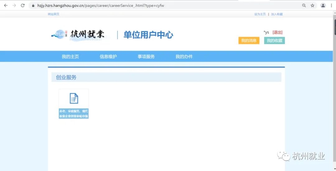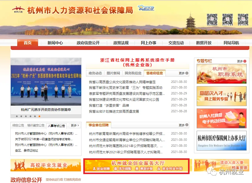 1.登录杭州市人力资源和社会保障局门户网站(http://hrss.hangzhou.gov.cn),点击“杭州就业创业服务大厅”进入系统。