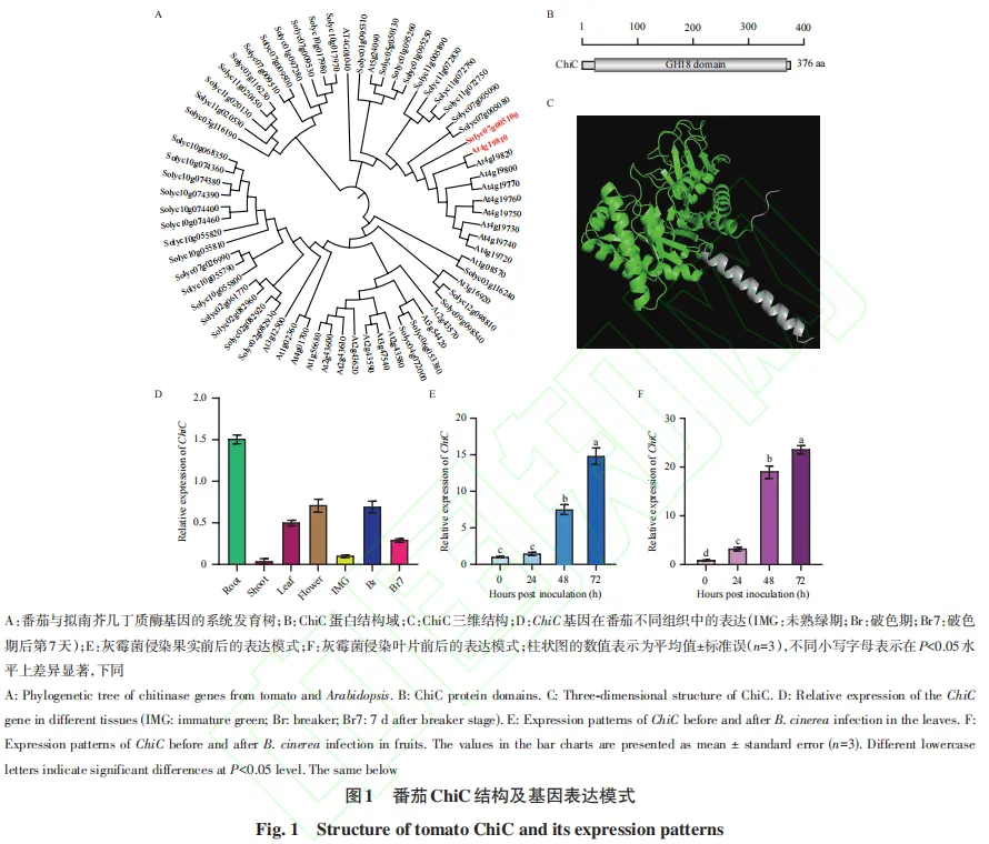 番茄基因组中一共有43个几丁质酶基因,其中25个与拟南芥几丁质酶基因同源,其中,ChiC基因在拟南芥中能够响应生物和非生物胁迫,而该基因在番茄中的功能尚不清楚。
