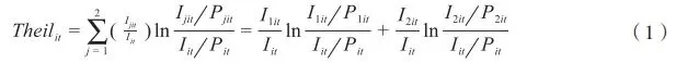 其中,i代表省份代码,t代表年份;I1it、I2it分别代表省份i在t年的城市与农村居民的总收入;Iit代表省份i在t年的总收入;P1it、P2it分别代表省份i在年份t的城市和农村居民的人口数,Pit代表省份i在时期t的总人口数。