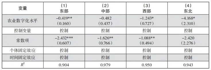 表6 农业数字化水平对不同区域城乡收入差距的影响