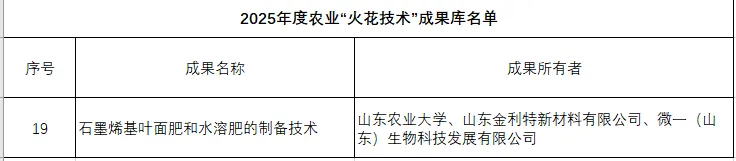 2025年10月13日,农村农业部发布,我司石墨烯基叶面肥和水溶肥的制备技术,成功纳入2025年度农业“火花技术”名单,未来,随着纳米材料在农业领域的不断应用与升级,石墨烯碳纳米助剂将持续解锁更多农业应用场景,为乡村振兴、农业现代化注入更多科技力量!