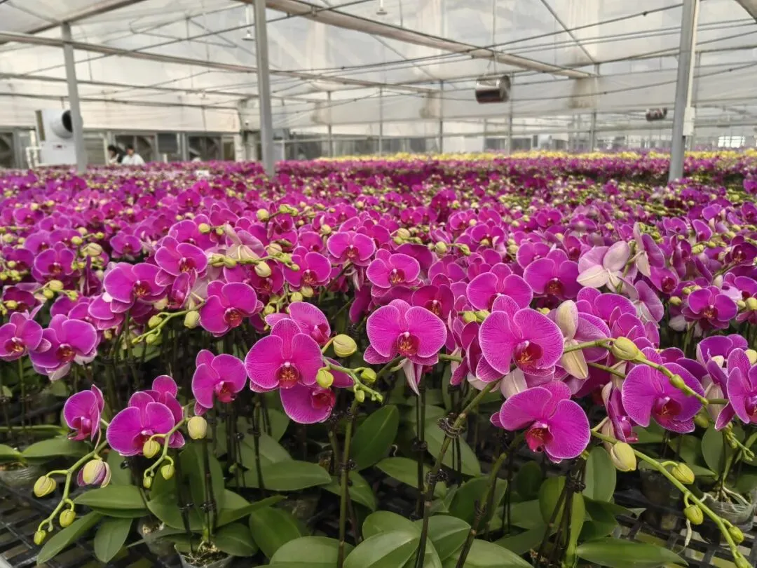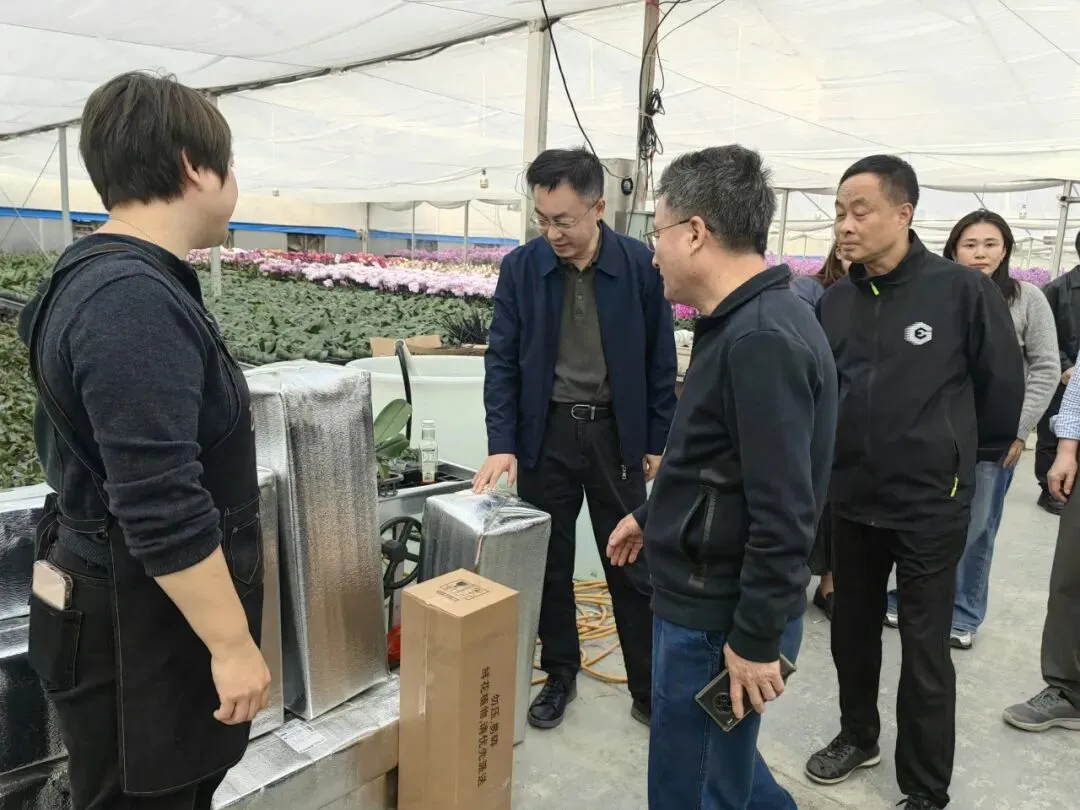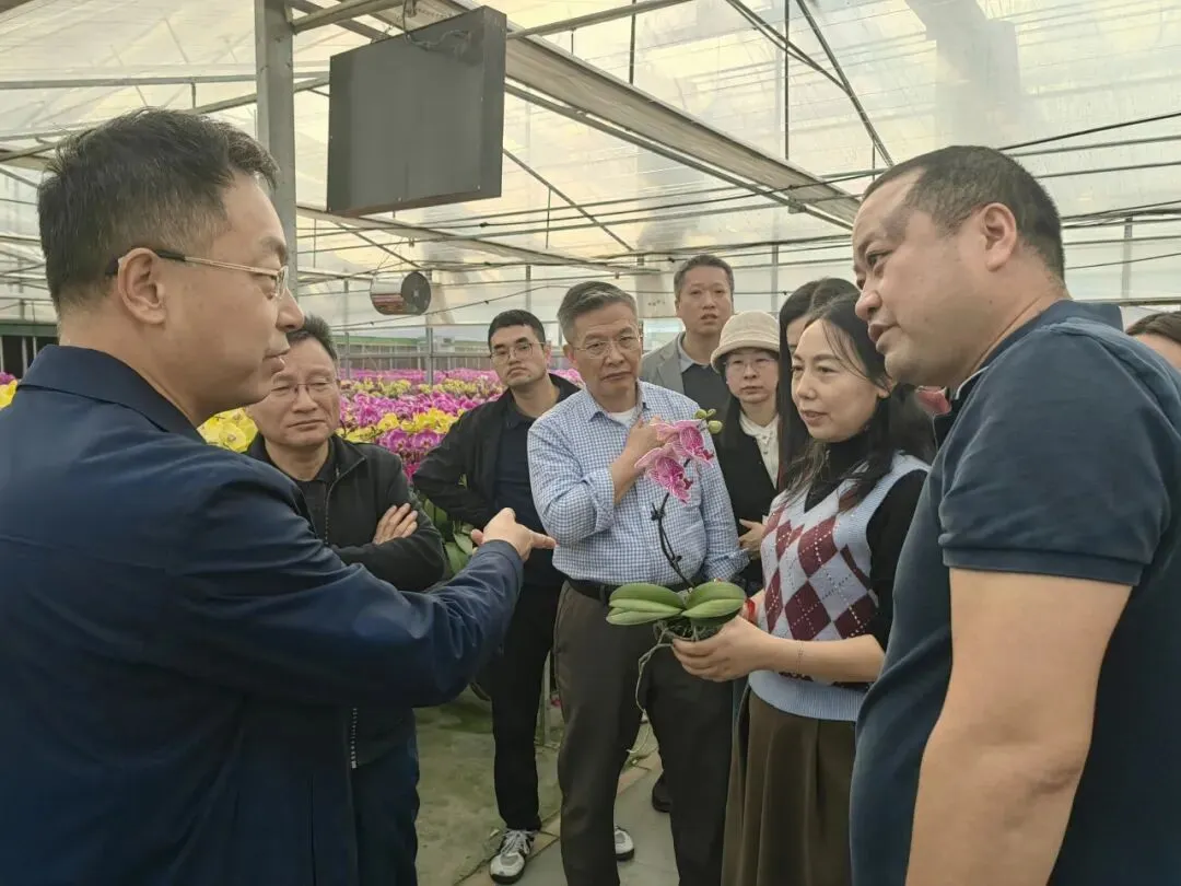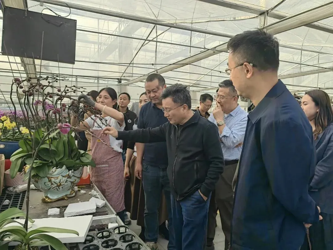 调研组首先走进广大兰园种植企业,实地考察蝴蝶兰的现代化培育技术、规模化生产流程与品质管控体系。在智能化温室中,调研组详细了解了万顷园艺世界在蝴蝶兰育种、催花、销售等环节的技术创新与标准化管理。