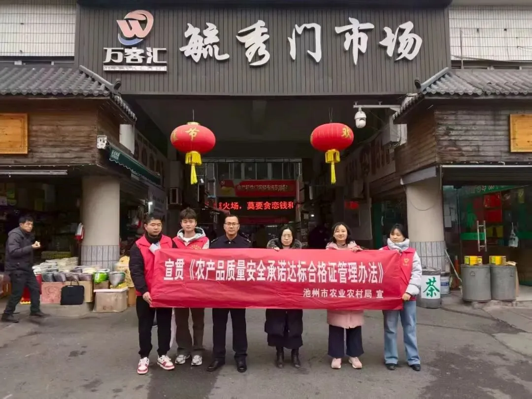 《农产品质量安全承诺达标合格证管理办法》将于2026年2月1日起正式施行。1月29日上午,市农业农村局在贵池区毓秀门市场开展《农产品质量安全承诺达标合格证管理办法》集中宣传活动,发放《农产品质量安全承诺达标合格证管理办法》明白纸,为群众和农贸市场商户仔细讲解承诺达标合格证开具对象和重要作用,鼓励商户和群众优先采购附具承诺达标合格证的农产品。
