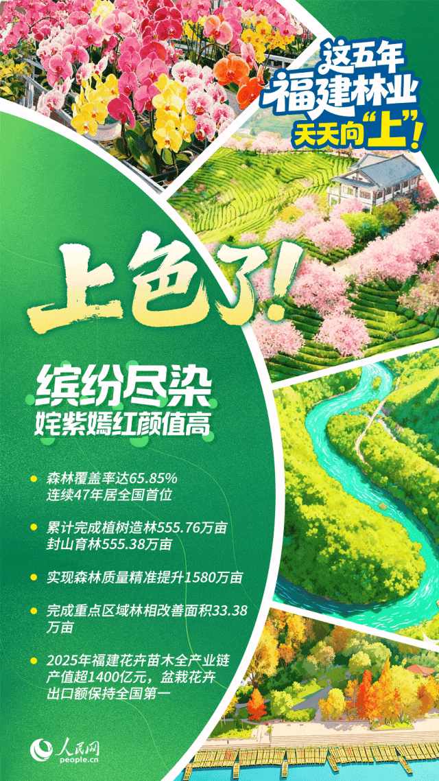 森林覆盖率连续47年居全国首位、在全国率先开展森林“四库”联动试点区建设、创新开展集体林权制度“三多”改革…… “十四五”期间,作为全国林业“优等生”,福建步履不停,天天向“上”。