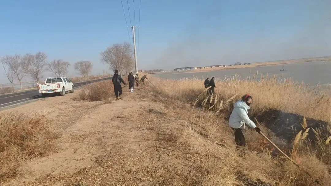 通过排查发现,在奈伦湖油路边生长的干枯芦苇及杂草存在火灾隐患。为及时消除安全隐患,管护中心联合经营责任主体对干枯芦苇及杂草进行了清理。