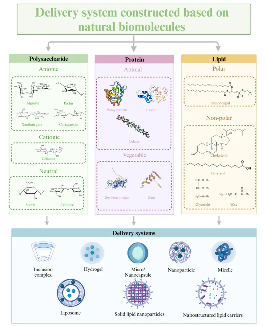 (2)多糖体系的干燥、复合改性及乳化特性研究具有重要的实际意义,相关研究成果可为微凝胶、微/纳米胶囊的制备提供理论参考,进而为其在婴儿配方奶粉生产中的实际应用奠定基础。此外,乳化能力与成膜性不足是多糖体系的另一大短板,将多糖与其他生物分子复配是极具前景的解决思路之一;未来需深入探究各复配组分间的相互作用机制,以此开发出核-壳结构的复合包封递送体系。
