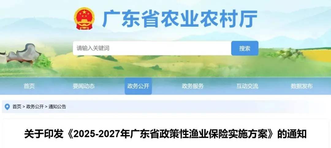 经省人民政府同意,现将《2025-2027年广东省政策性渔业保险实施方案》印发给你们,请组织落实。执行过程中遇到的问题,请及时向省农业农村厅、省财政厅、广东金融监管局反映。