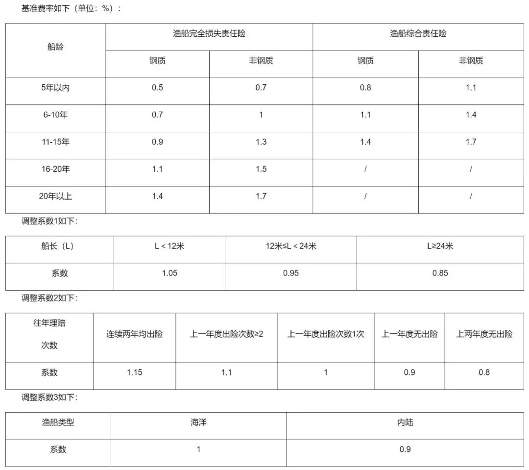 2.渔船财产完全损失保险、综合保险根据船龄不同估算其实际价值,保险金额不高于渔船实际价值的90%。