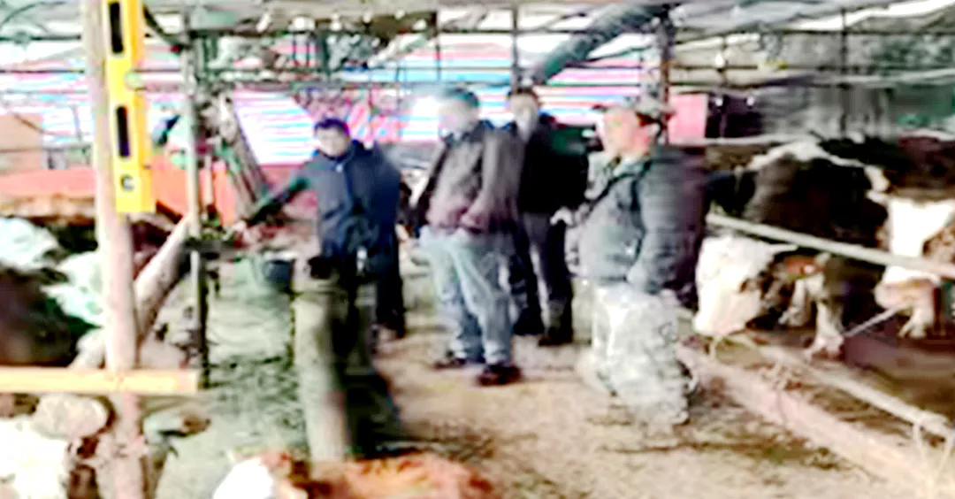 活动现场,老专家们不畏天寒地冻,走进牛场考察。圈舍内,毛色光亮、膘肥体壮的西门塔尔牛正活跃其间,养殖户钟成玲夫妻忙碌添料清扫,一派兴旺景象。作为当地养殖带头人,钟成玲于2024年率先引进西门塔尔牛,建成标准化牛舍与发酵池,现存栏150余头,预计年底收入超10万元。“这牛抗病强、生长快,单头可达580公斤,肉质鲜嫩,市场溢价30%!我十分感谢张站长一行老专家当初的推荐。”她欣喜地说道。更值一提的是,牛粪经发酵制成有机肥,年增收2万余元,实现了“养殖+生态”双收益。