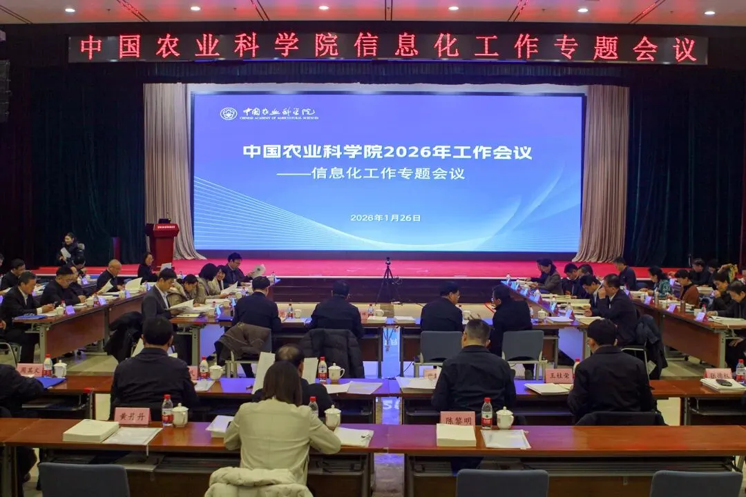1月26日,中国农业科学院2026年信息化工作专题会议在北京召开。院党组书记、信息化工作领导小组组长杨振海出席会议并讲话,院纪检组组长周若辉,院党组成员、人事局局长陈华宁出席会议,副院长孙坦主持会议。