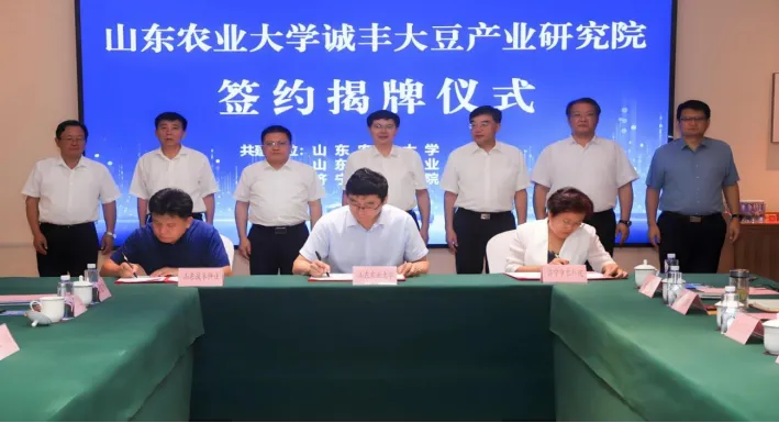 师生共建大豆产业研究院,冷畅俭校长(二排左四)出席签约揭牌仪式