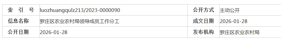 罗庄区农业农村局领导成员工作分工