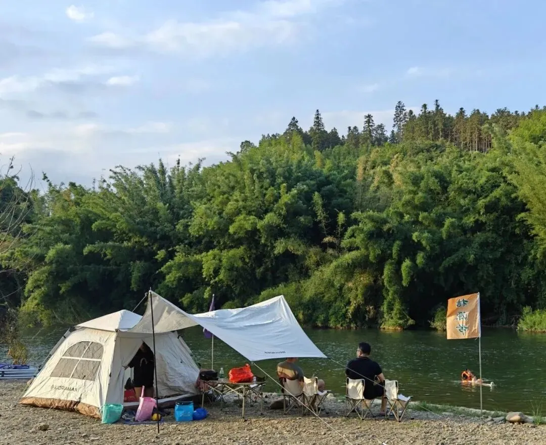 占地百亩的才妙村露营基地和“铜钱湾”网红打卡胜地,坐落于才妙村浪溪江畔。这里有河道越野争霸赛、特色水上滑梯、水上餐桌、野炊烧烤、泳池畅游、璀璨夜聚等体验项目,是人们亲近自然、享受美食与欢乐的梦幻之境。