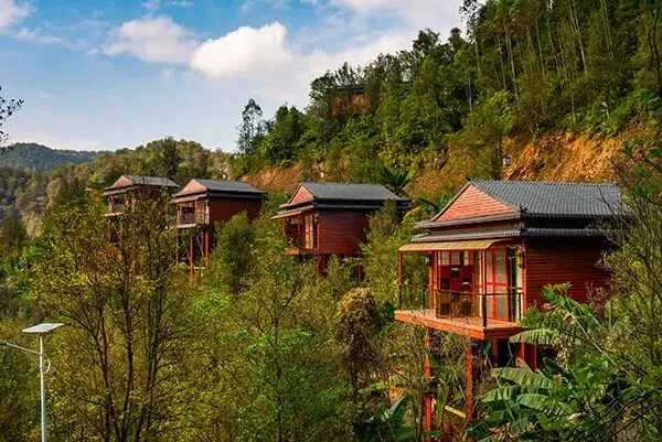 游客可在八角红椎古树林与林下药材基地学习生态知识,参与木工研学与农事劳作,在星空露营地闻香采摘,或入住森林康养谷的观景木屋与玻璃别墅,静享自然滋养。同时,这里设有红色教育展馆与多样化的森林运动空间,推出以八角鸡、娃娃鱼面条为代表的特色林间美食,是远离喧嚣、沉浸山野的理想之地。