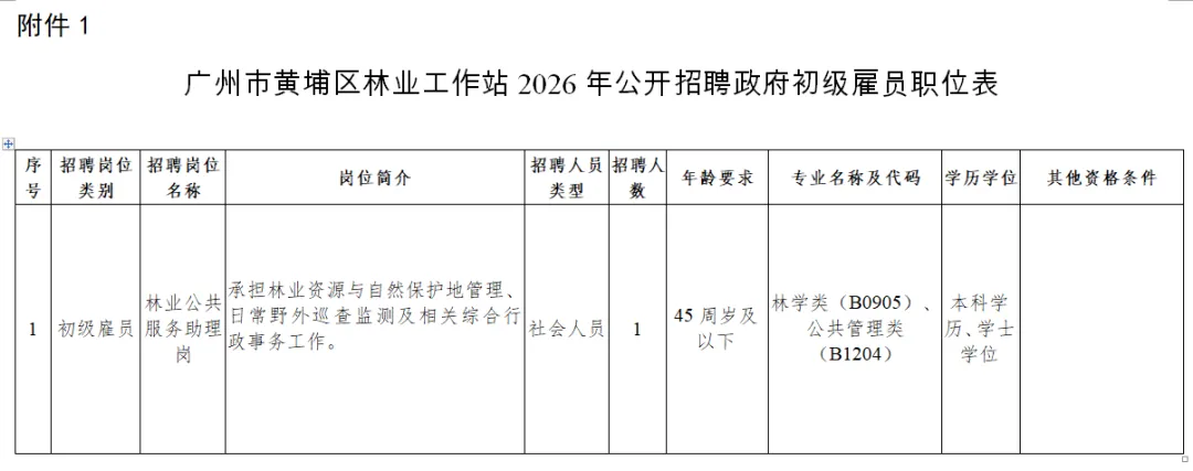 🌲 广州市黄埔区林业工作站招聘启事 🌲