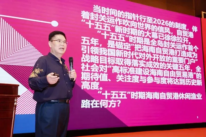 知名电视评论员,海南省休闲渔业协会首席专家陈治宪教授,依据对中央与海南自贸港政策的学习理解,对产业发展趋势的研究与前瞻,做了题为《自贸港休闲渔业“十五五”发展走向》的主题报告。